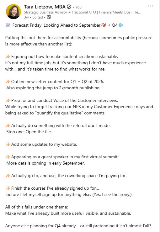 I recently posted about my August reflections and Sept/Q4 forecast on LinkedIn and Instagram, but here’s the summary in case you missed it (thank you social media algorithms):